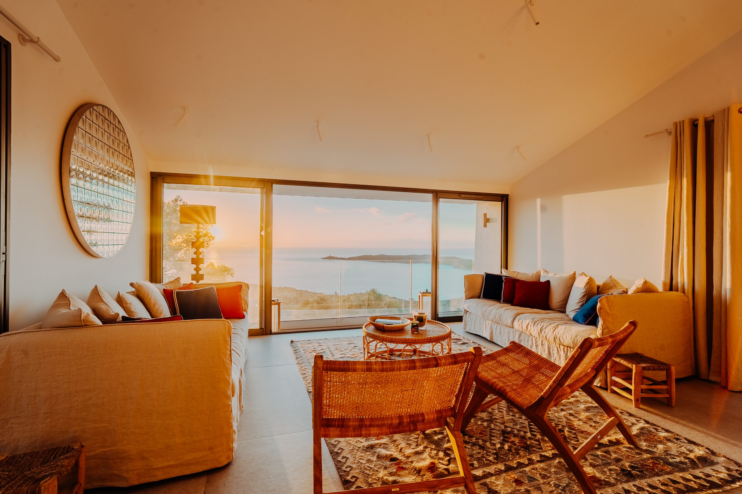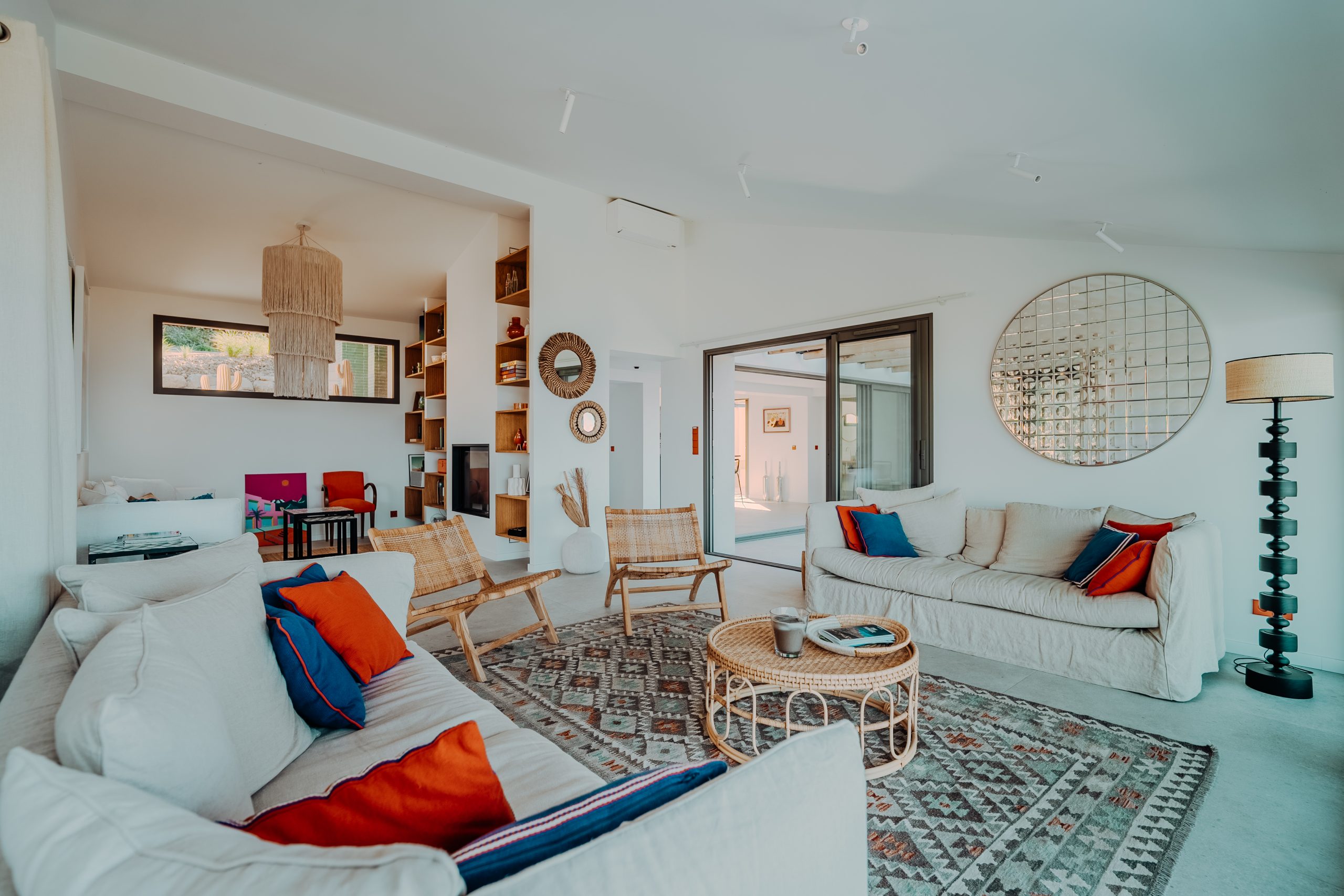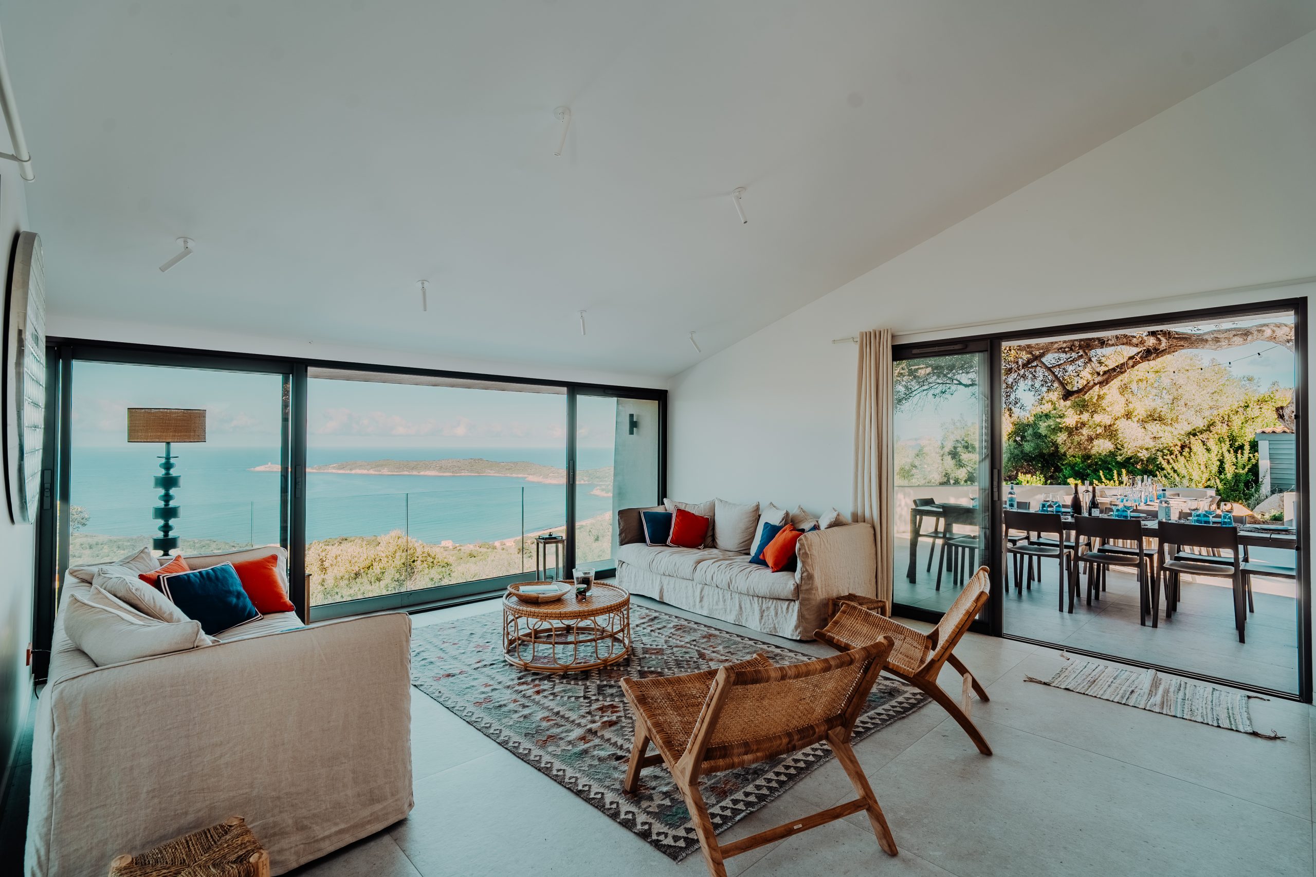 Le Grand Salon – Un espace de vie panoramique face à la baie de Cargèse