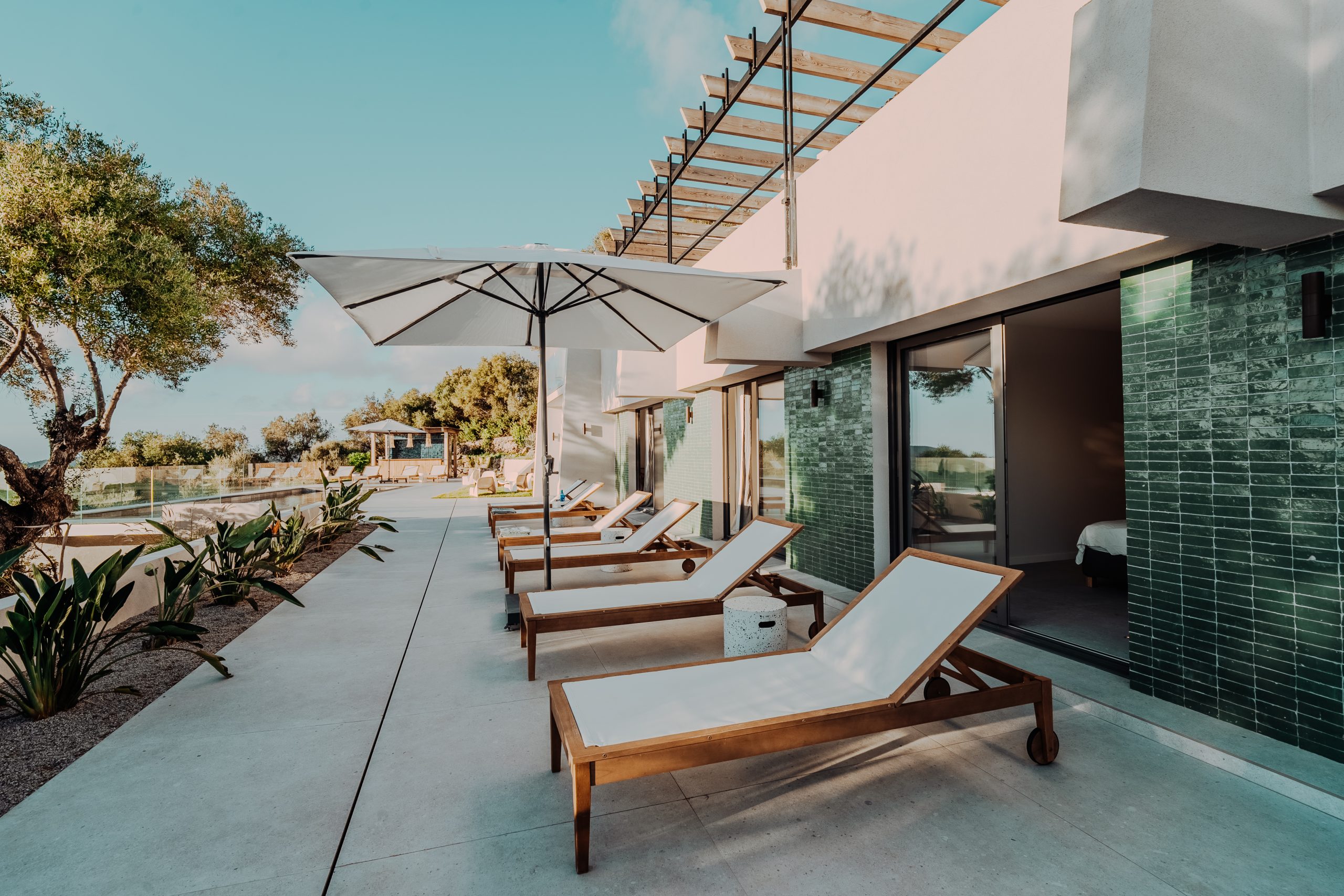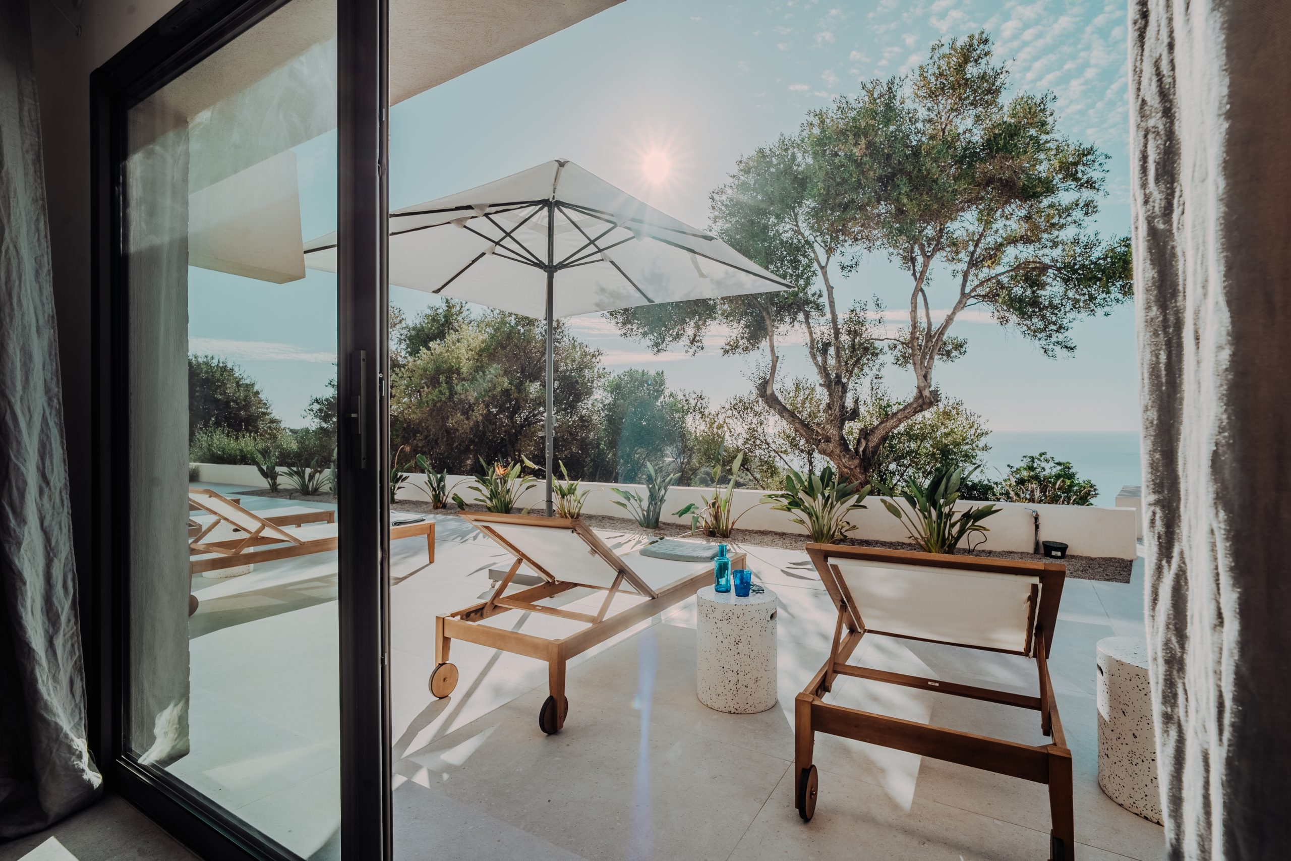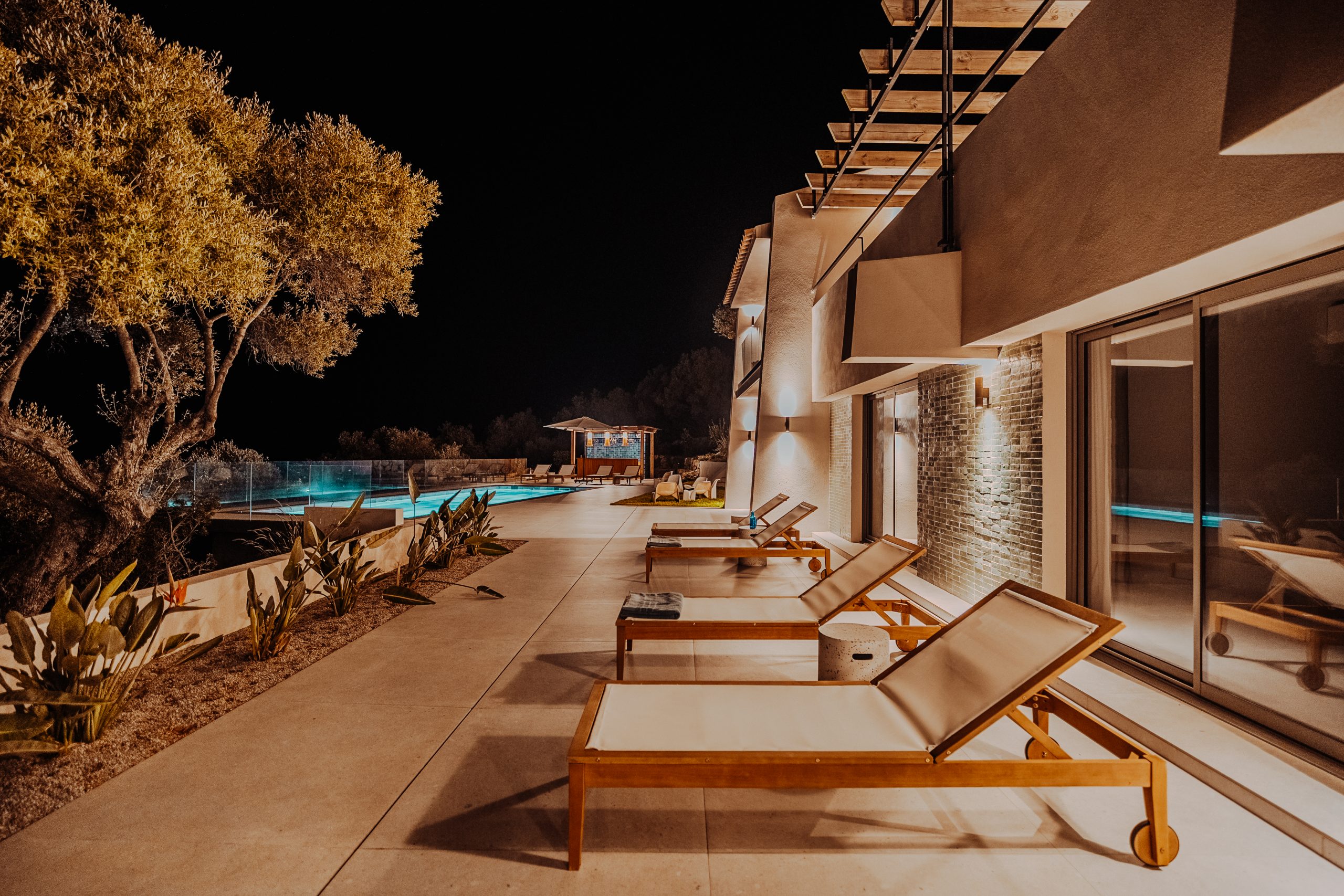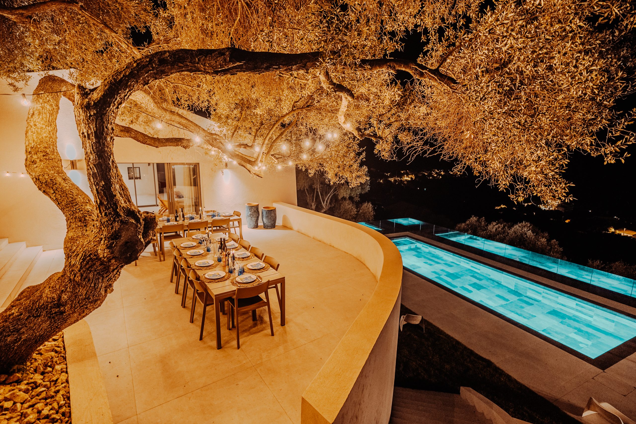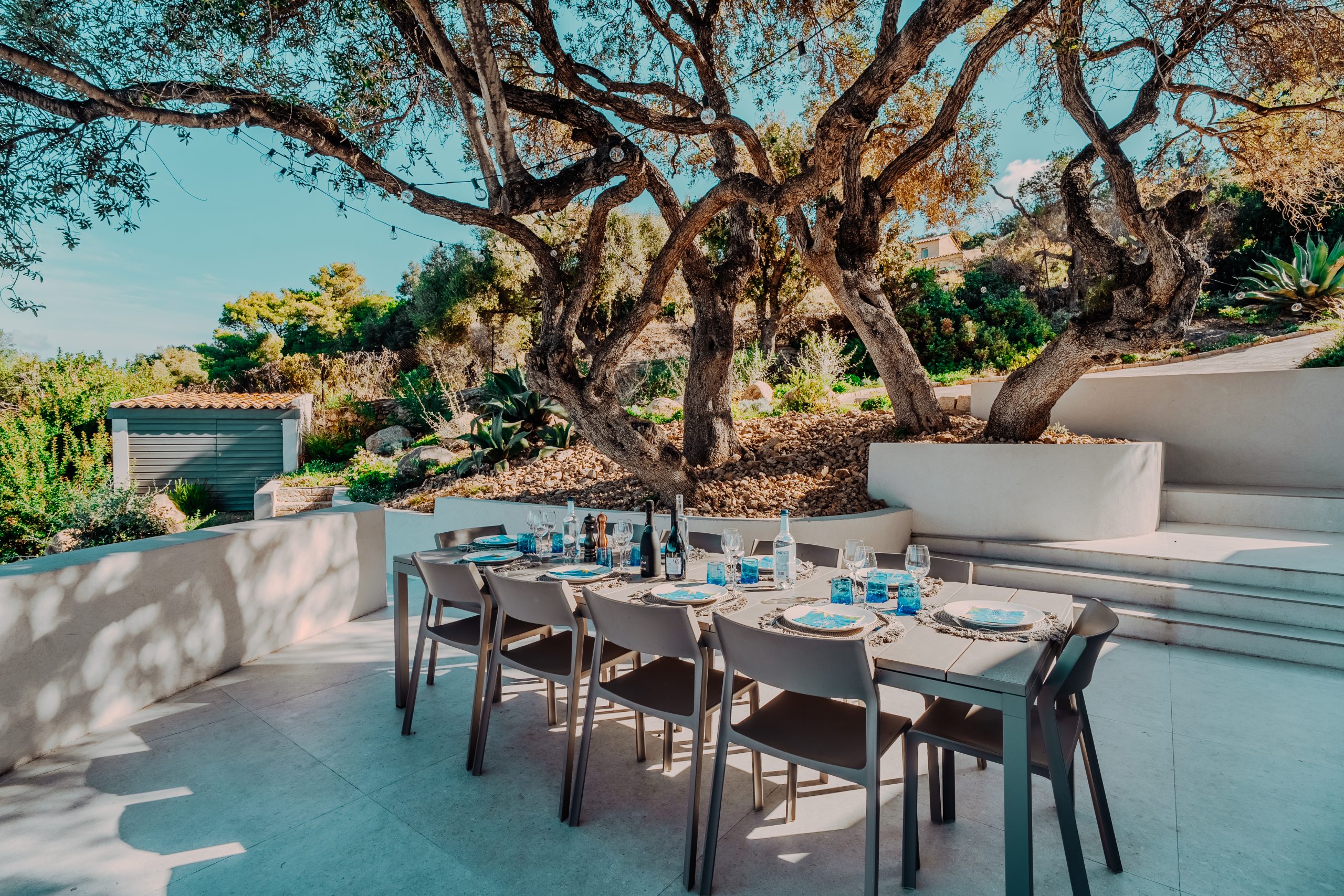 Côté oliviers – donne directement sur la piscine et est ombragée par de grands oliviers centenaires.
